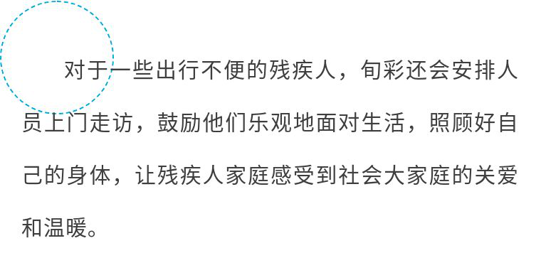 旬彩多次开展关爱残疾人的主题活动,上门走访残疾人,关心他们生活的点点滴滴,让残疾人的满足感、幸福观、安全感持续得到提升。