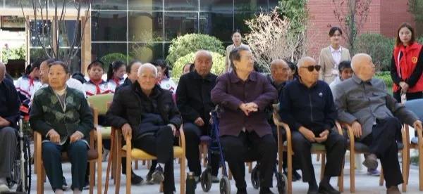 来到中庭花园,长者们已经早早坐好等待着小朋友们的到来,满脸洋溢着幸福的微笑。